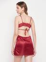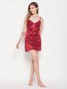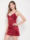Crafted with ultra-smooth Satin blended material, this romantic nightwear is available in Red colour. Giving a sexy yet cute look, the babydoll is not only comfortable but also stylish. This is a honeymoon-perfect dress, which can be worn on a romantic trip. This baby doll with lacy cups and a plunging neckline has adjustable noodle straps. Turn up the heat with this midnight blue baby doll.