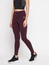 Maroon ankle-length tights crafted with soft moisture-wicking polyamide spandex fabric.