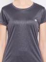 Dark grey comfort fit sports T-shirt crafted with 1% polyester fabric.Designed with geometric print all over.Has a round neckline and short sleeves.Has reflective logo at the front.Quick Dry Technology that wicks away sweat during an intense workout routine, keeping you cool dry.Has breathable material with extra pores to evaporate sweat and maintain airflow.Has anti-static properties to stop the T-shirt from clinging to your body.Provides ease of movement and avoids wear or tear.Maximizes flexibility, mobility performance.Perfect for all kinds of workout sessions like Zumba, dance, yoga, cycling, gym or running.