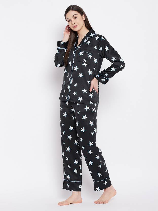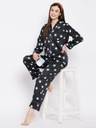 Women Night Suit Set Black Abstract