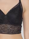 Longline bralette crafted from a blend of powernet and delicate lace, featuring intricate scalloped lace detailing along the neckline and underbust for a touch of elegance. The padded, non-wired cups offer modesty and a poke-free, comfortable fit, while the full-coverage design prevents top and side spillage. Detachable straps allow versatile styling options, and the bralette is secured at the back with four hook-and-eye closures for a supportive and reliable fit?erfect for blending style, comfort, and confidence.