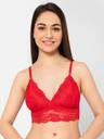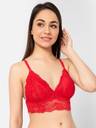 Longline bralette crafted from elegant self-patterned lace fabric for a feminine, sophisticated look. The non-padded, non-wired cups provide a lightweight, poke-free fit for all-day comfort, while the full-coverage design prevents top and side spillage for a smooth silhouette. Secured at the back with four hook-and-three-eye closures, this bralette offers reliable support and a flattering fit, combining comfort and elegance effortlessly.