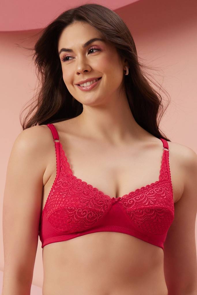 This bra is crafted with breathable cotton rich fabric that provides all-day comfort. It has non-padded double layered cups to protect modesty without adding any bulk. The non-wired cups provide a poke-free experience. It has full coverage cups which ensures no top and side spillages. Has adjustable straps as per your comfort zone. It has 2 hook and eye closure in smaller cups and 3 in bigger cups.