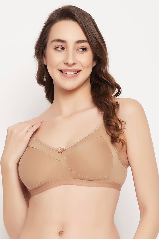 Nude colour T-shirt bra with non-padded cups to avoid extra bulk.Crafted with comfortable breathable cotton rich fabric.Non-wired for a poke-free experience.Full coverage for no top or side spillage.Double layered cups to protect modesty.Seamless cups for a smooth finish under fitted tops.Detachable straps to style the bra in multiple ways.Broad underband for added lift support.Cute bow at the centre for embellishment.Secured with triple hook eye enclosures at the back.