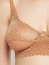 A:This bra is meticulously crafted with exquisite lace fabric and boasts scalloped lace detailing along the neckline for added elegance