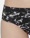 Black, purple and yellow printed mid waist hipster panty. Crafted with soft and stretchable cotton spandex for all day comfort. Soft elastic along the waistband and leg openings for a snug fit. Double layered crotch for hygiene.