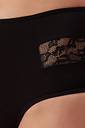 Black High Waist Hipster With Medium Coverage.Crafted With Soft And Stretchable Cotton Spandex For Utmost Comfort.Comfortable Soft Elastic Along The Waistline And Leg Openings For A Snug Fit.Lace Panels On Either Side.Double Layered Gusset For Hygiene.
