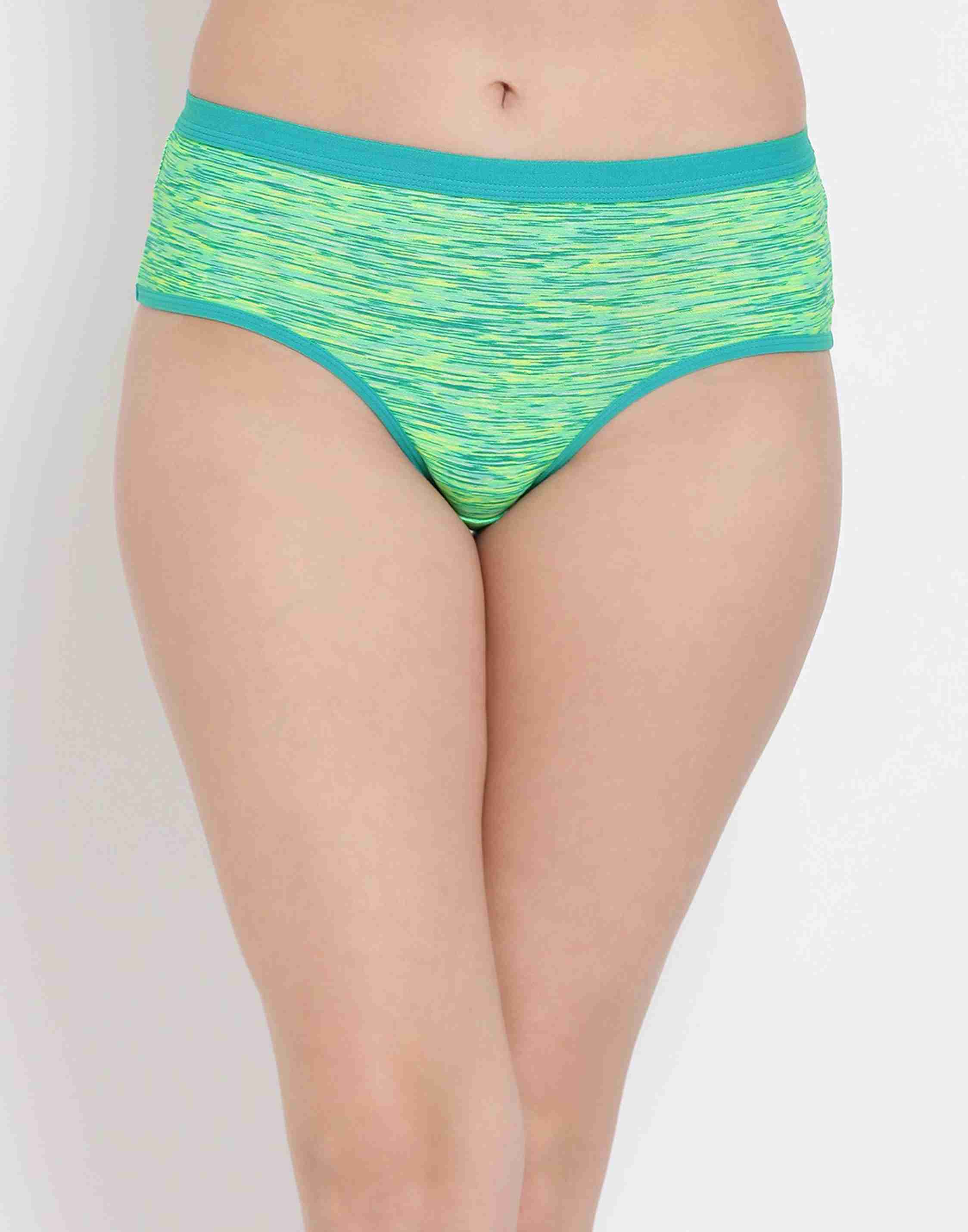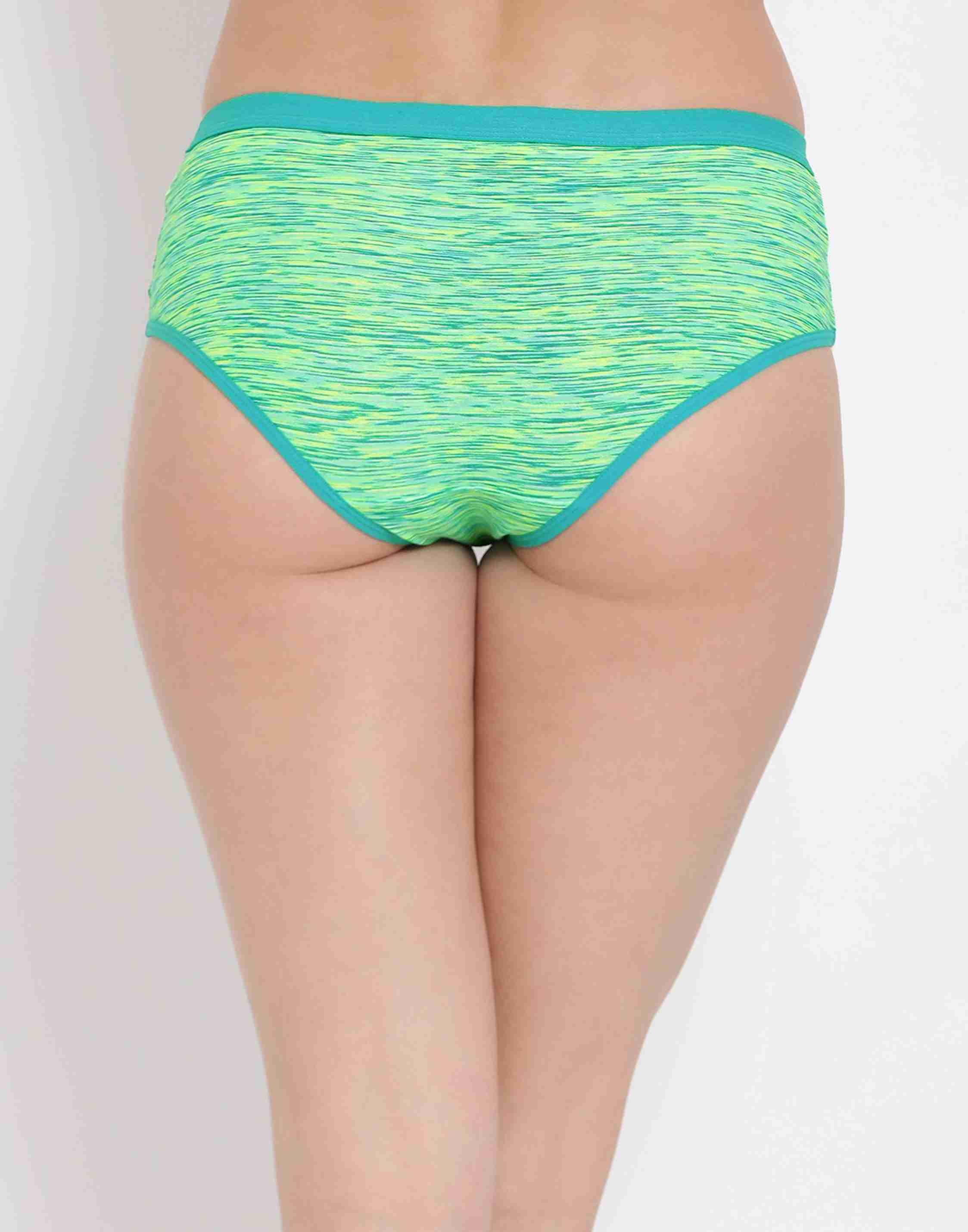 Green mid waist hipster panty with slub print. Crafted with soft and stretchable cotton spandex for all day comfort. Soft elastic along the waistband and leg openings for a snug fit. Double layered cr...