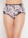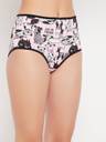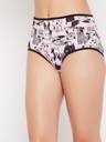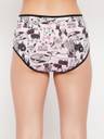 Baby pink high waist hipster panty offering medium rear coverage.Crafted with breathable stretchable cotton spandex fabric.Designed with dog print all over.High rise for a flattering fit with no muffin top.Broader side wings to prevent side bulges.Soft black elastic at the waistband leg openings for a snug fit.Double layered gusset for hygiene.