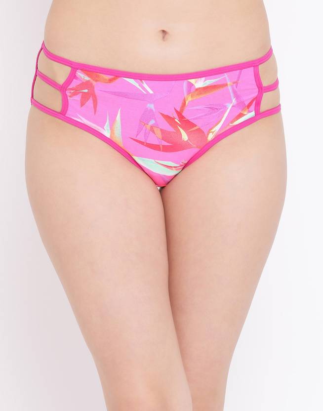 Pink Tropical Print Mid Waist Hipster Panty.Crafted With Soft And Stretchable Cotton Spandex For All Day Comfort.Soft Elastic Along The Waistband And Leg Openings For A Snug Fit.Cut-Out Details On Either Side.Double Layered Crotch For Hygiene.