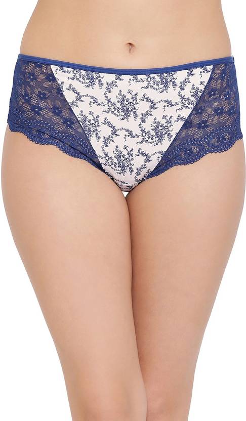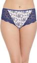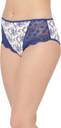 White and blue mid waist hipster with medium coverage.