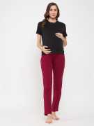 maternity pyjama pant crafted with comfortable & stretchable 100% cotton fabric. Has a stretchable belly panel that easily takes up the shape of the tummy. Has a broad elastic waistband to support the growing bump.