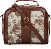 This bag is perfectly designed with one spacious compartment. The compartment has a zip closure for protecting all valuables.Made from combination of premium Tapestry and Faux leather. For the inner lining soft feel premium quality polyester fabric is used. Comes with durable fittings like zippers, pullers, buckles.The compartment that includes an inner zip pocket & an open pocket for mobile, coins etc.The bag comes with sturdy shoulder belt. Can be used as a crossbody or single shoulder bag.