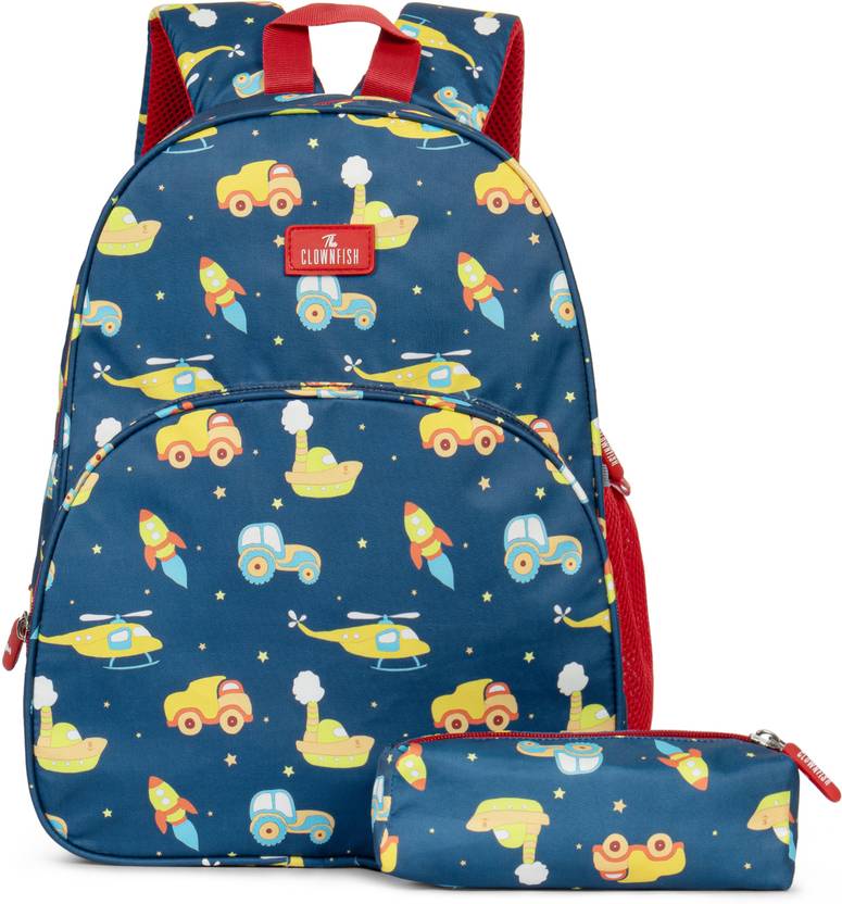 Looking for a convenient and fun backpack for your child's school needs? The Clownfish Cosmic Critters kids backpack school bag is perfect for children/students who need to carry their essentials to school. The bag comes with a FREE pencil pouch worth Rs 100/-. The school bag features a durable material that can withstand wear and tear, ensuring it will last for the entire school year. The comfortable cushioned shoulder straps and back make it easy for children to carry. The bag comes with one main compartment for storage of books, folders, and other school supplies. Front & side pockets for storing tiffin box & waterbottle conveniently. The included pencil pouch is a convenient addition, keeping pens, pencils, and erasers organized and easily accessible. The backpack is lightweight and age-appropriate in size and design, with fun and colorful patterns or characters to appeal to children. The adjustable straps accommodate growing children. The easy-to-use zippers and closures allow children to manage their backpack independently. With this backpack and pencil pouch, your child will be prepared and organized for every school day. Whether your child is heading to school or out for a day of fun, our backpack is the perfect accessory to carry all of their essentials in style.