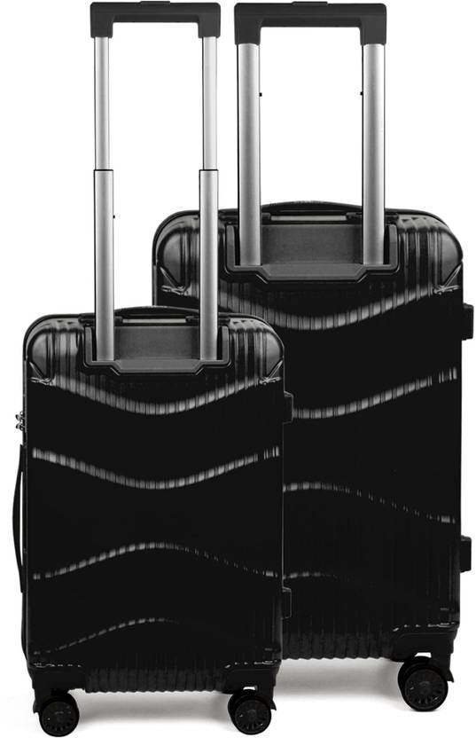 Hard Body Set of 2 Luggage 8 Wheels - Luggage Polycarbonate Trolley Bag (Medium 65 cm-24 inch, Small 55 cm-20 inch) - Black