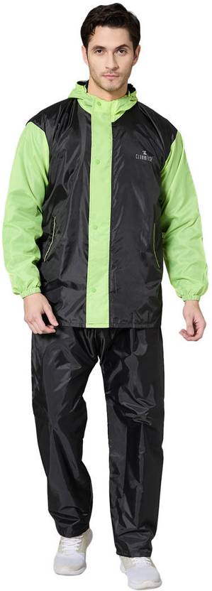 Introducing the ultimate shield against stormy skies: The Clownfish Color Block series Men's Raincoat. Crafted with precision and designed for resilience, this raincoat for men is your steadfast companion during drizzles downpours. Made from high-quality waterproof material, this raincoat for men effortlessly repels raindrops, keeping you dry and comfortable throughout your journey. Whether you're navigating city streets or exploring the great outdoors, its durable construction with overlapping flap over zipper ensures reliable protection against the elements. Designed with your needs in mind, this raincoat boasts elastic sleeves and trousers, ensuring a snug fit that prevents rain from sneaking in. The adjustable hood adds another layer of versatility to this essential garment. Whether you're facing a light drizzle or a torrential downpour, simply tighten the hood for a secure fit. Lightweight and easy to carry, it's ideal for travel, outdoor activities, or daily commutes. Embrace unpredictable weather with ease and elegance—choose our COLOR BLOCK Men's Raincoat and experience the ultimate in protection and comfort.