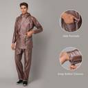 This raincoat is made from premium waterproof PVC material. Every joint is seam sealed with additional leak proof stitching making it completely waterproof. Overlaying flap with snap buttons over s prevents water seepage. (Note):- If your size is M please purchase size size L, If your size is size L please purchase size XL, If your size is XL please purchase size XXL, If your size is XXL please purchase size XXXL, If your size is XXXL please purchase size XXXXL