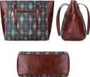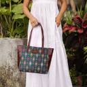 Printed Jute Fabric & Faux Leather Women's Tote Shoulder Handbag (Green)