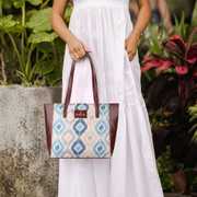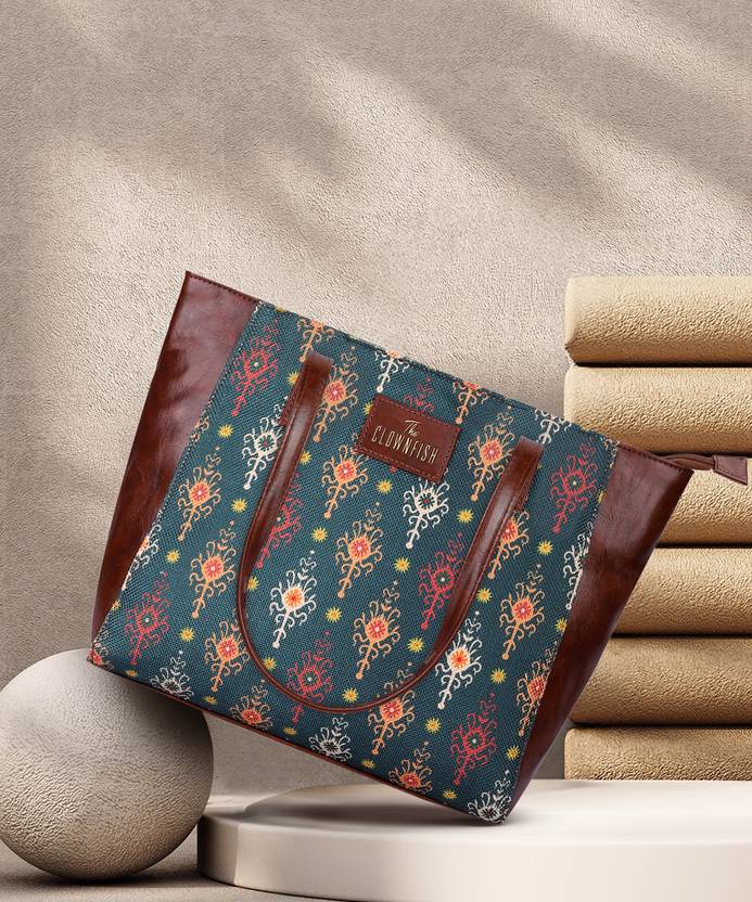 The Clownfish Valentine Printed Handicraft Fabric & Faux Leather Handbag / Tote/ Shoulder bag is a compact handbag for storage of all essentials of women and college-going girls. It is made from combination of premium Printed Handicraft Fabric and Faux leather that offers durability. A versatile handbag that features with two compartments having a centre divided long zip pocket, organizer pockets & a small inner zip pocket. The bag is spacious enough to store your 7.3 inches Tablet, A4 size Notepad, diary, book and other cosmetic essentials. Back zip pocket for mobile or small accessories, coins etc. This bag comes with a sturdy twin handle. Can be used as a handbag or tote. Can be a perfect gift for your near and dear ones.