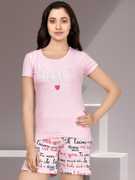 Stay comfortable all day long in this cute night wear set. Whether its lounging around or dreaming , this Lounge Set from Club A9 is perfect! The set consists of a pair of short and a top. Short has elasticated waistband with drawstring Top has a round neck with short sleeves.With unique prints and soft fabric will keep you comfortable all day long. This trendy lounge set is a must have in your wardrobe. It is a combo of latest trend and ultimate comfort.