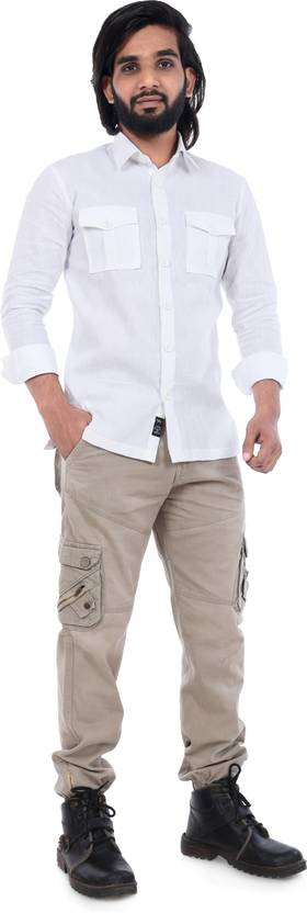 Club maxx Linen Hunting Men Solid Casual White Shirt
