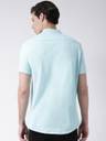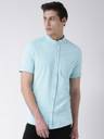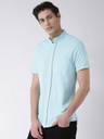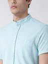 Men's Turquoise Blue Half Sleeve Solid Mandarin Colllar Casual Shirt with Patch Pocket