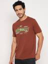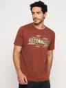 Men Printed Round Neck Cotton Blend Brown T-Shirt
