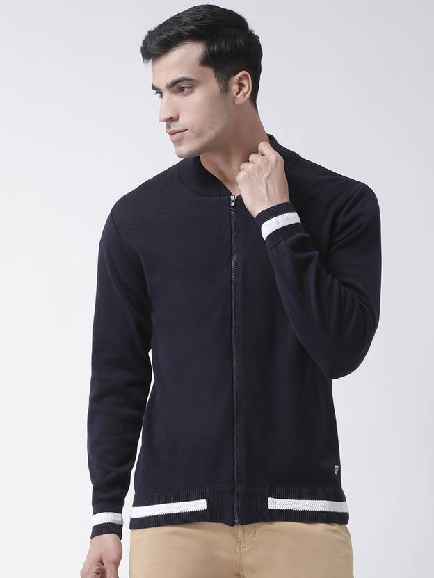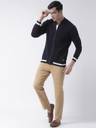 Club York Men's Navy Blue Full Sleeve Solid Stand-Up Collar Sweater With Front Zipper