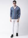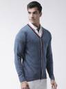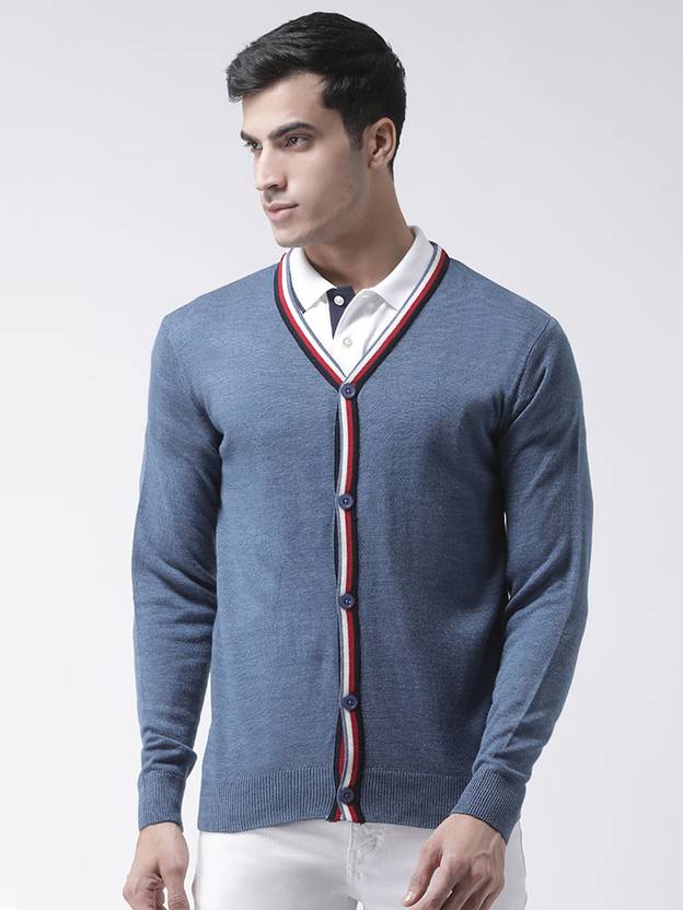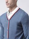 Club York Solid V Neck Casual Men Blue Sweater