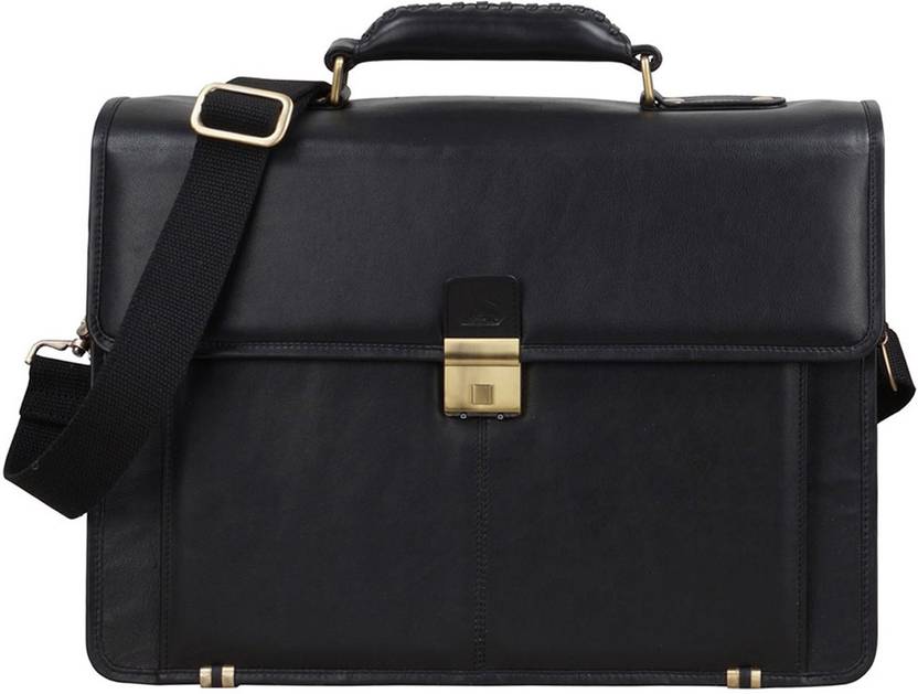 CLUBB Hunter Leather Laptop Unisex Messenger Medium Briefcase Medium Briefcase - For Men (Black)