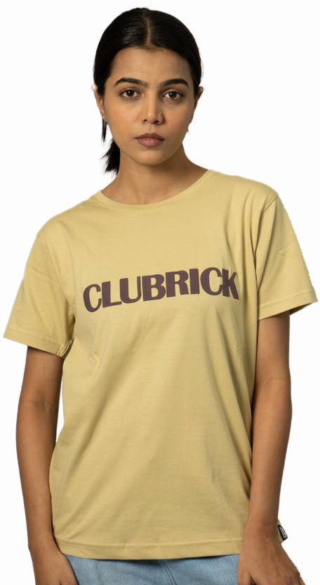 Clubrick Women Typography Round Neck Pure Cotton Beige T-Shirt