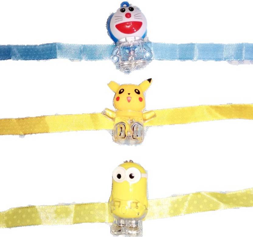 1 Pikachu Type Rakhi, 1 Minion Type Rakhi, 1 Doreamon Type Rakhi
