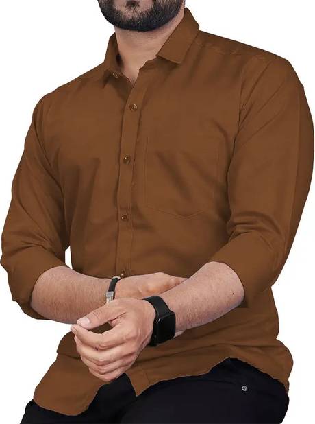 Men Slim Fit Solid Curved Collar Formal Shirt