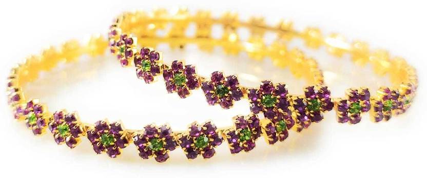 CM FASHIONS Copper Emerald, Ruby Gold-plated Bangle Set (Pack of 2)