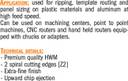 Premium quality HWM, 2 spiral cutting edges [Z2], Extra-fine finish, Upward chip ejection, Used for ripping, template routing and panel sizing on plastic materials and aluminum at high feed speed.