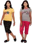 CNT Kids Nightwear Girls Printed Cotton Blend (Multicolor Pack of 2)