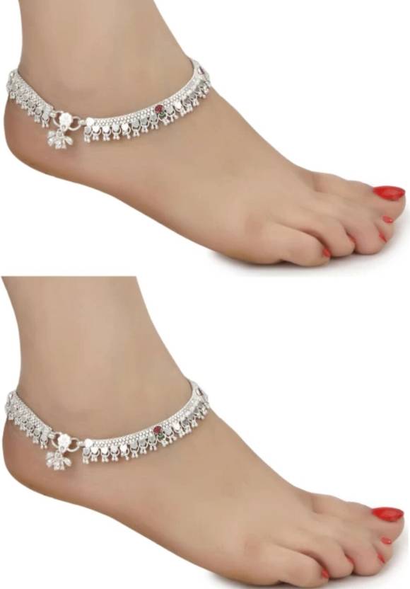 indian fanci ethnic white metal combo pcs pack of 2 combo payal metal payal Silver Anklet