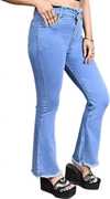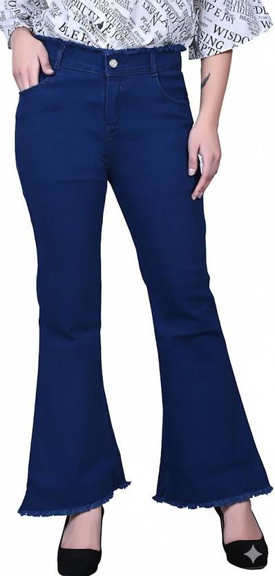 Unleash your inner fashionista with these trendy high-rise bell bottom jeans. Designed to flatter every body type, these jeans feature a chic wide-leg flare that adds a touch of retro-cool to any outfit. Made from a comfortable and durable denim blend, they offer the perfect combination of style and stretch for all-day wear. Pair them with a tucked-in t-shirt for a casual look, or dress them up with a blouse and heels for a night out. A must-have staple for your wardrobe!
