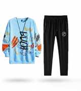The eye-catching graphic print on the t-shirt adds a trendy edge, while the matching track pant ensures a clean, coordinated look. Whether you’re hitting the gym or relaxing at home, this outfit keeps you comfortable and stylish all day long.