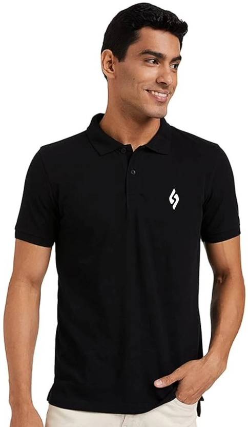 cnw Solid Men Polo Neck Black T-Shirt