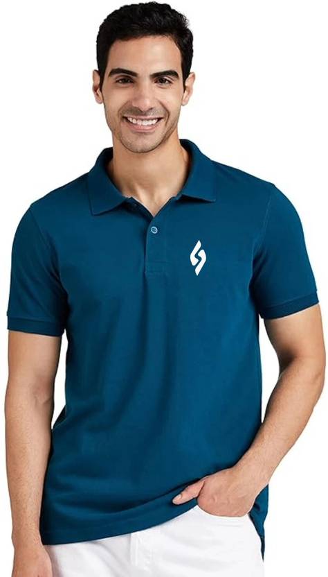 Men Solid Polo Neck Polycotton Blue T-Shirt