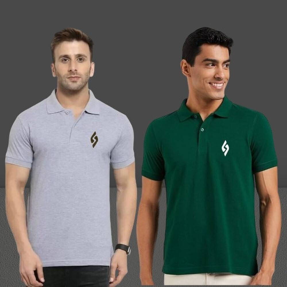 cnw Pack of 2 Men Solid Polo Neck Polycotton Green, Grey T-Shirt