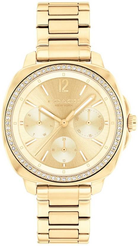 Introducing the Coach KITT women's watch, featuring a chic Tonneau dial shape that sets it apart. This fashionable timepiece is powered by a reliable Quartz movement and protected by a durable mineral glass crystal. With its stylish design and water resistance, the KITT model effortlessly blends elegance with practicality. Elevate your look with this stunning Coach watch.