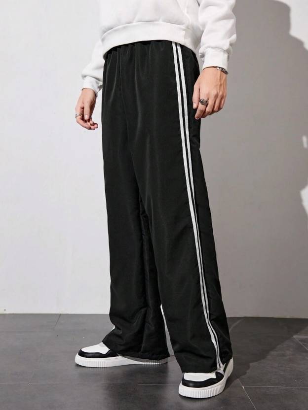 Elevate your casual style with these trendy Black Wide-Leg Track Pants featuring a sleek, relaxed fit. Made from lightweight, breathable fabric, these pants ensure maximum comfort and effortless movement. Designed with dual white side stripes for a sporty edge, they are perfect for everyday wear, workouts, or street-style looks.