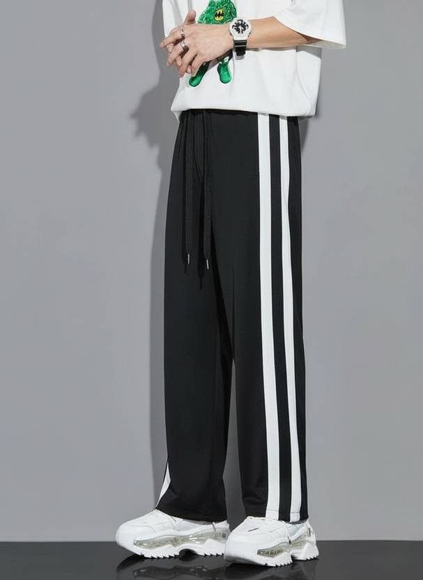 Upgrade your casual and sportswear collection with this stylish black track pant featuring dual white side stripes. Designed for comfort and durability, it is perfect for workouts, running, training sessions, or everyday wear. The relaxed fit with an elasticated waistband and adjustable drawstring ensures maximum comfort, while the straight-cut design adds a trendy, athletic vibe. Pair it with sneakers and a tee for a sporty streetwear look.