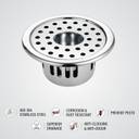 COATS ANTI COCKROACH TRAP HOLE (ROUND) : Their contemporary style creates a lovely, smooth appearance on your floor. It will make your bathroom seem better. You'll have a lot less trouble if you use the removable cover. The drain has a brushed, smooth surface made of excellent stainless steel grade 304, high duty solid metal is corrosion proof, non-corrosive, and ensures long-term use. It can be used in your kitchen, bathroom, basement, garage and outdoor spaces. It will give your locations a beautiful appearance. Additionally aids in preventing mice, cockroaches, and other insects at bay. Our anti cockroach trap plain prevents odour, gases, and pests from entering the bathroom. The cockroach trap also gathers waste to avoid drain clogs.