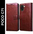 Cockcrow Flip Cover for POCO C71 (Brown, Shock Proof, Pack of: 1)