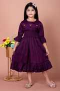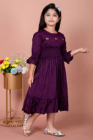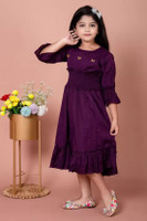 Coco Fashion Girls Midi/Knee Length Casual Dress (Maroon, 3/4 Sleeve)
