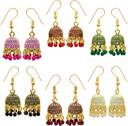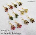 Multicolor Golden Jhumka Combo Set Pack of 6 small Jhumki Earrings for Girls