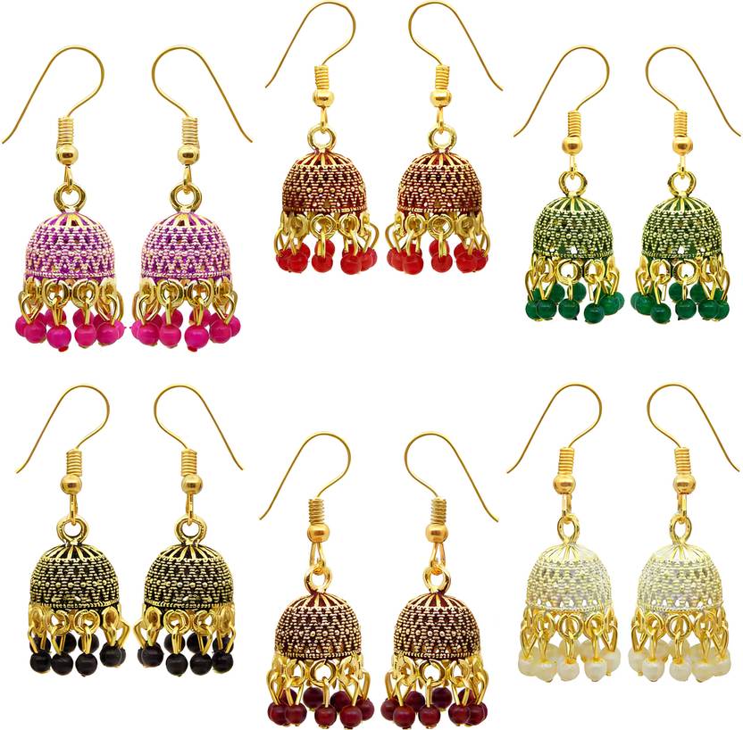 Multicolor Golden Jhumka Combo Set Pack of 6 small Jhumki Earrings for Girls Alloy Jhumki Earring
